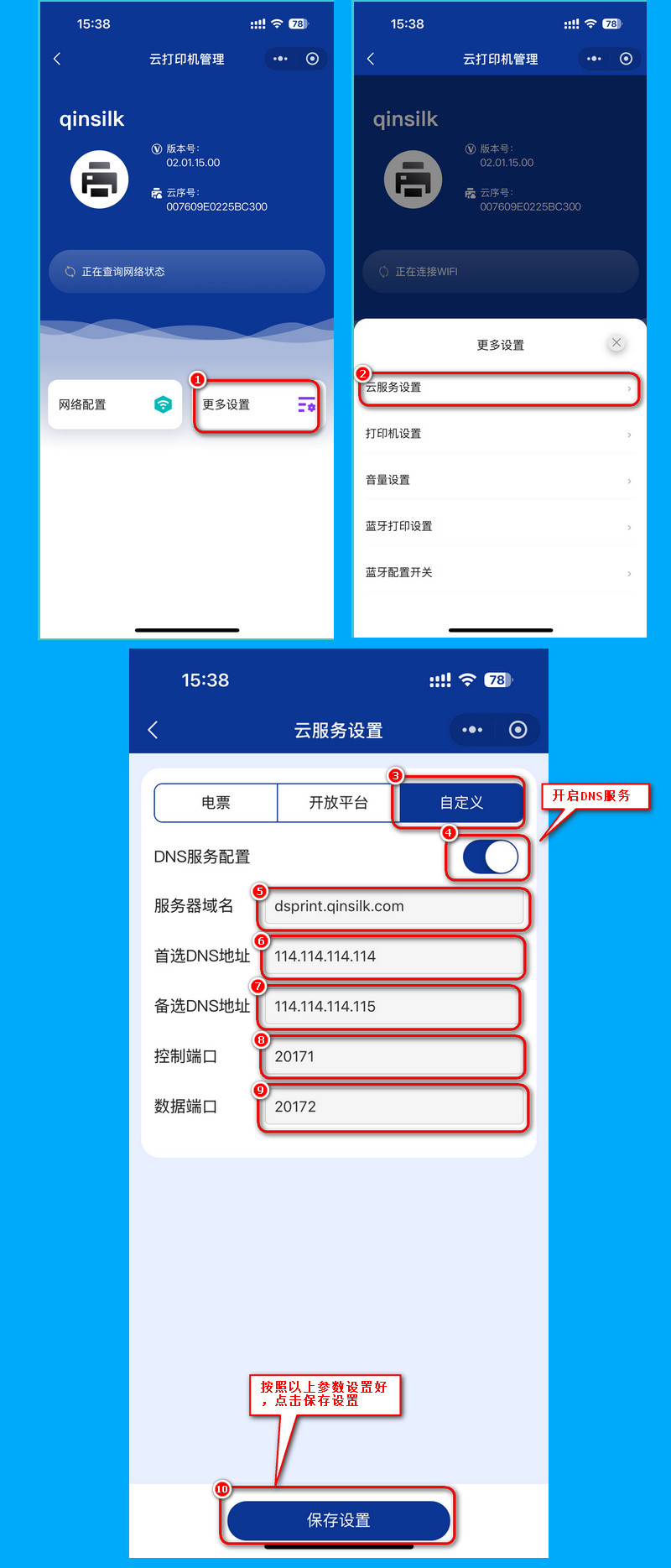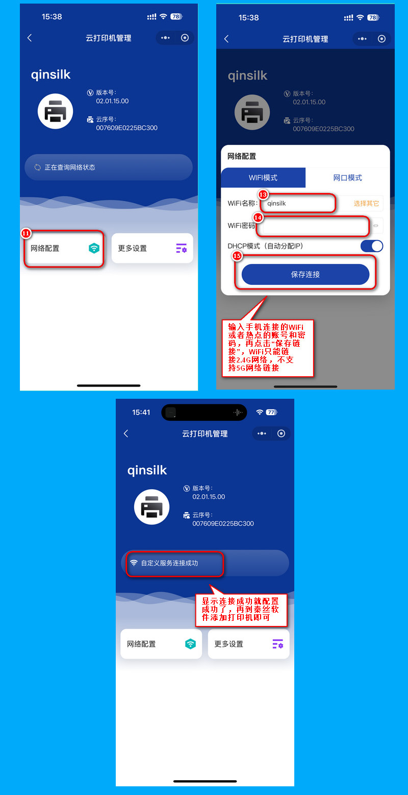 秦丝N5云针式打印机配网教程