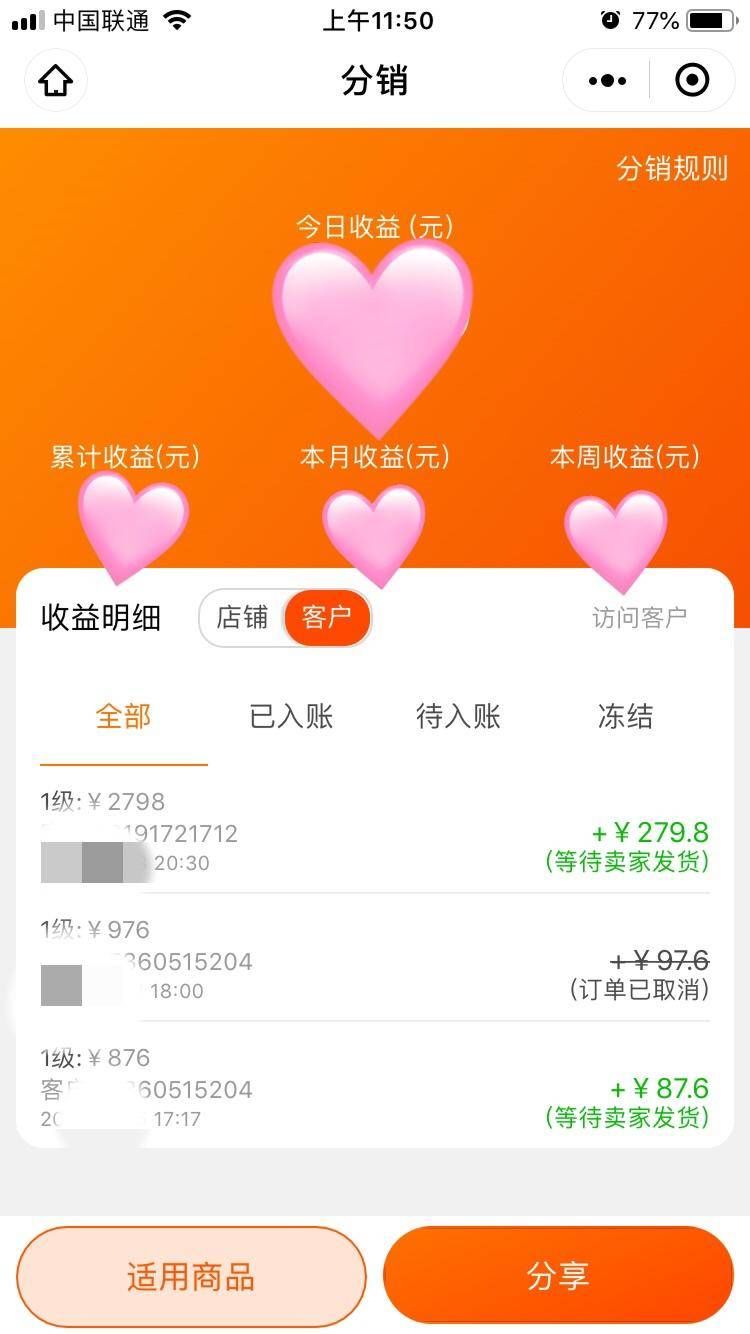 “挑食熊”分销客户群体主要分布在宝妈便利店、奶站、快递、驿站等这些地方,他们有一定客户且了解电商。武老板在跟这些代理聊的时候,告诉他们操作流程极简单,傻瓜式的销售模式,他们只需要转发小程序有顾客购买,他们就可以赚到提成,并且他们可以去招新的代理,这样给到的提成更诱人,代理当然很乐意。 通过销货宝小程序的分销功能,武老板不但钱来的快,而且分销快速裂变也提升了“挑食熊”网店的会员数量,实在是完美。