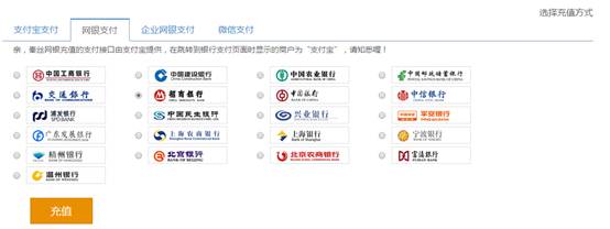 选择去充值可以对账户进行充值,您可以选择支付宝,网银和企业网银等充值方式。