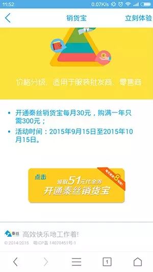 另:秦丝科技会不定期推出活动,包括销货宝代金券领取等,可扫面下方二维码关注秦丝官微哦。